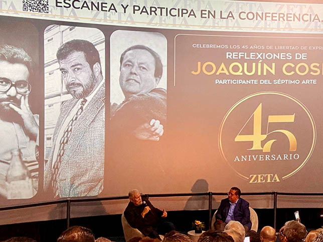 El Semanario Zeta conmemoró su 45 aniversario con una charla especial con el actor Joaquín Cosío, reconocido por sus papeles como "El Mascarita" o "El Cochiloco". El evento, realizado en Tijuana, fue también un homenaje a la resistencia periodística y a la memoria de los colaboradores del medio que han sido asesinados.