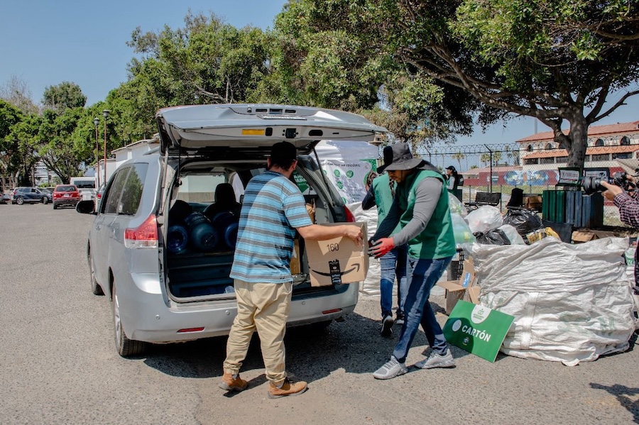 Familias ensenadenses recibieron plantas al momento de dejar sus residuos en el Punto Verde del Centro Cultural Riviera, como parte de la celebración del quinto aniversario del programa Reciclando Ensenada.